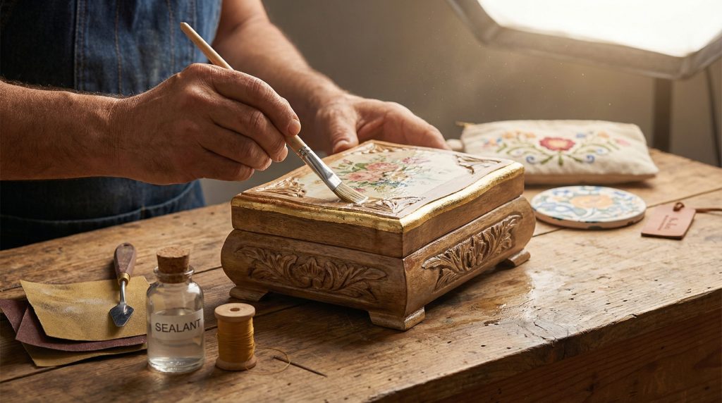 A proteção é a alma da durabilidade. Uma peça linda que descasca em uma semana é um prejuízo para a sua reputação. A escolha do material de proteção deve considerar a superfície (madeira, vidro, metal, tecido) e a exposição que o objeto terá (sol, chuva, manuseio interno). A impermeabilização correta cria uma barreira física e química contra agentes externos.