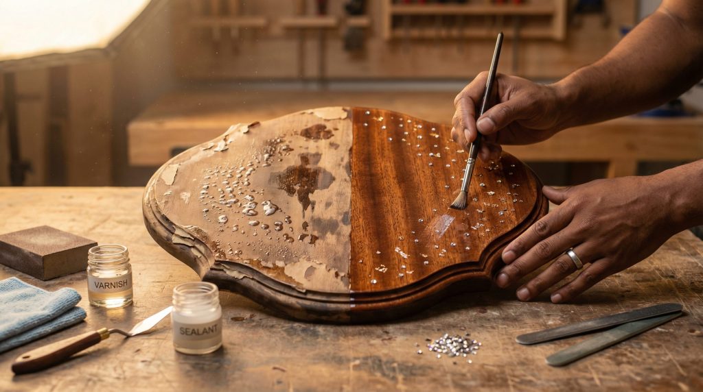 A escolha do material de cobertura define a “personalidade” da peça. Você deseja um visual rústico e fosco, ou algo moderno e brilhante? A química dos materiais deve ser respeitada para evitar reações indesejadas que estraguem horas de trabalho.